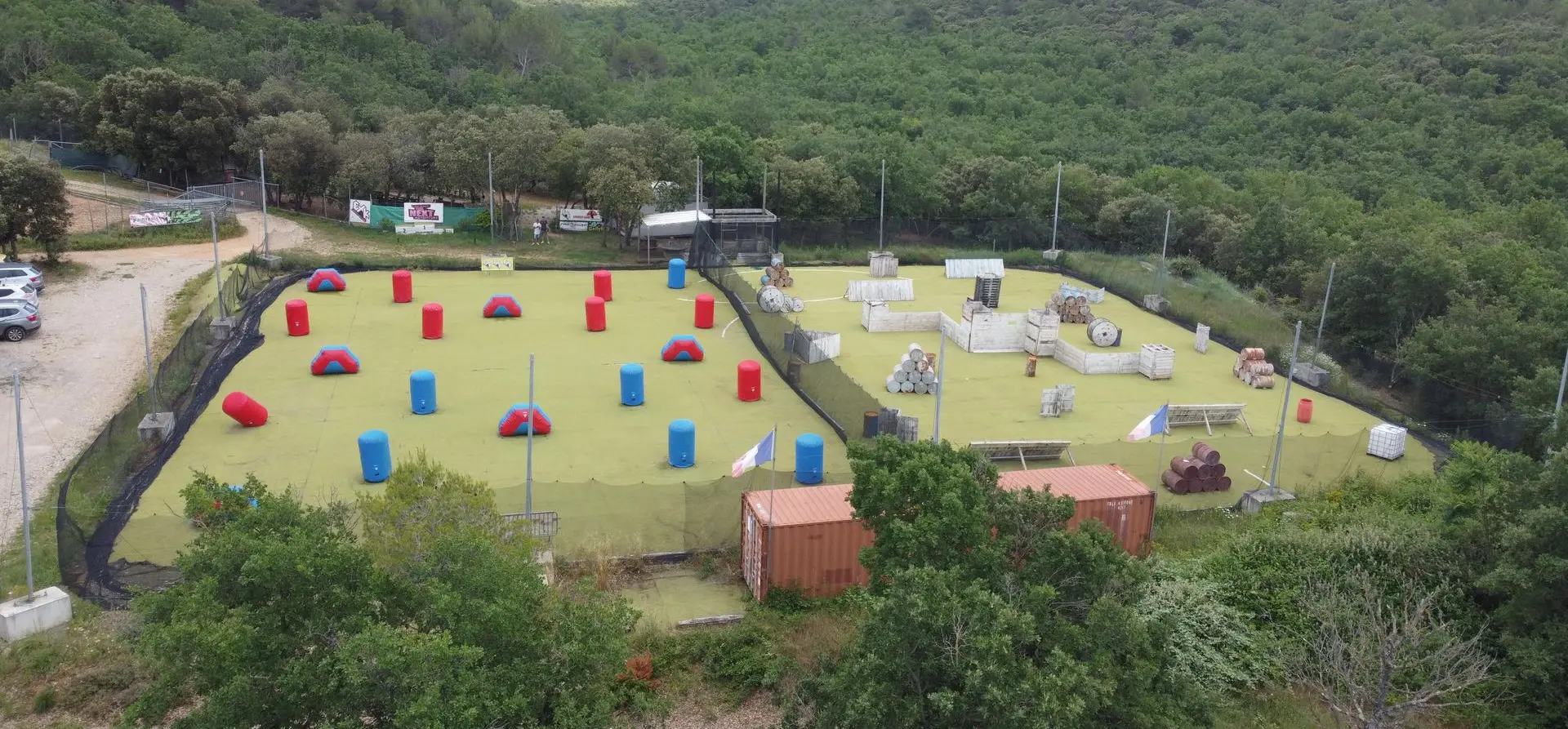Découvrez notre terrain de Speedball professionnel homologué pour les compétition et aux normes de la Fédération Française de Paintball.